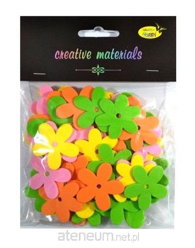 Zestaw elementów w formie kwiatów z pianki wielkości 38-52 mm , zawierający 56 elementów, w kolorystyce wiosennej pakowany w eleganckie opakowanie z eurozawieszką. Elementy można naklejać na każdą powierzchnię lub używać do innych zdobień. Opakowanie zawiera miks kolorystyczny elementów.