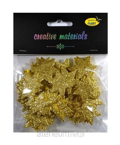 Zestaw elementów w formie gwiazdek z pianki brokatowej wielkości 35 mm , zawierający ok. 50 elementów, pakowany w eleganckie opakowanie z eurozawieszką. Elementy można naklejać na każdą powierzchnię lub używać do innych zdobień. Opakowanie zawiera elementy w kolorze złotym.