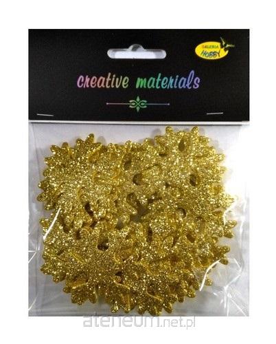Zestaw elementów w formie śnieżynek z pianki brokatowej wielkości 50 mm , zawierający ok. 30 elementów, pakowany w eleganckie opakowanie z eurozawieszką. Elementy można naklejać na każdą powierzchnię lub używać do innych zdobień. Opakowanie zawiera elementy w kolorze złotym.