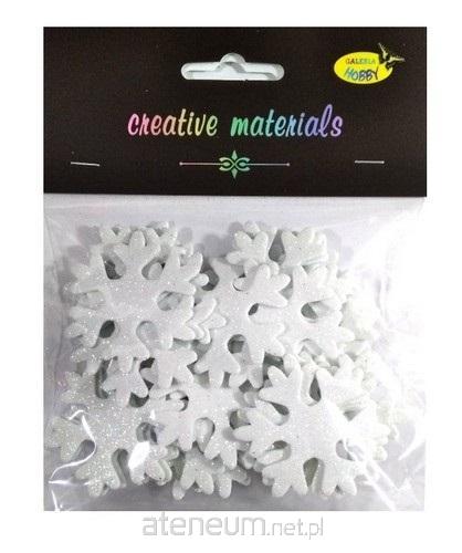 Zestaw elementów w formie śnieżynek z pianki brokatowej wielkości 50 mm , zawierający ok. 30 elementów, pakowany w eleganckie opakowanie z eurozawieszką. Elementy można naklejać na każdą powierzchnię lub używać do innych zdobień.Opakowanie zawiera elementy w kolorze białym.