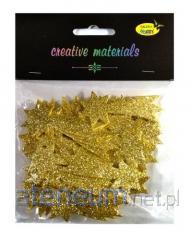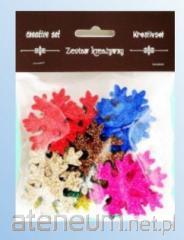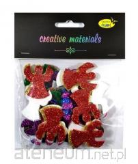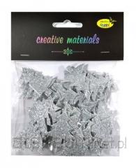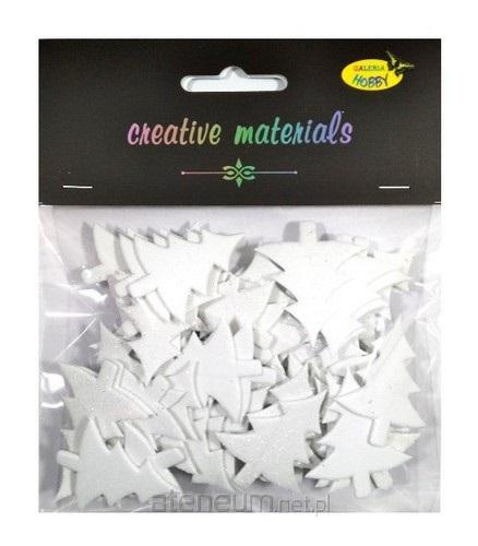 Zestaw elementów w formie choinek z pianki brokatowej wielkości 40 mm , zawierający ok. 60 elementów, pakowany w eleganckie opakowanie z eurozawieszką. Elementy można naklejać na każdą powierzchnię lub używać do innych zdobień. Opakowanie zawiera elementy w kolorze białym.