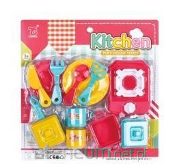 Zestaw naczyń dla dzieci. Znajdują się m.in. 2 talerze, garnek, patelnia, 2 kieliszki, kuchenka i akcesoria kuchenne. Produkt uprzyjemni dzieciom zabawę w dom. Produkt dla dzieci od 3 lat. Podane wymiary są wymiarami opakowania. Zabawka zapakowana w kartonowe opakowanie z okienkiem.