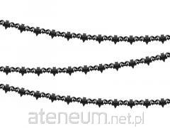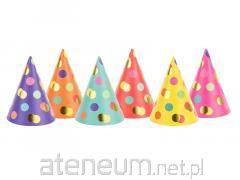 Gadżety imprezowe o wymiarach: czapeczka 16 cm średnica 10 cm, trąbka 19 cm, gwizdek 9 cm (rozwinięty 2,5x35 cm), serpentyny 18 krążków.