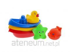 Zabawka łódka z koszem do kąpieli dla mniejszych dzieci. Wystarczy przymocować łódkę do ściany w łazience i podczas kąpieli cieszyć się zabawą. Zestaw zawiera: łódkę, kosz oraz 3 kolorowe piłeczki, którymi można trafiać do kosza podczas kąpieli. Zabawka rozwija u dziecka logiczne myślenie, poprawia koordynację ręka-oko. Produkt zapakowany w kartonowe opakowanie. Zabawka przeznaczona dla dzieci od 18 miesiąca życia.