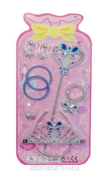 Zestaw biżuterii tiara z różdżką. W zestawie znajduje się także naszyjnik, kolczyki, pierścionek i 2 bransoletki. Wszystko z motywem motyla. Produkt zapakowny w kartonową podstawkę z przezroczystym kloszem. Zabawka dla dzieci od 3 lat. Podane wymiary są wymiarami opakowania.