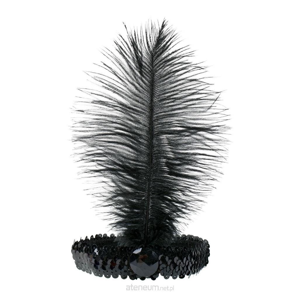 Elastyczna opaska cekinowa ozdobiona piórkiem i kolorowym kamieniem. Idealne uzupełnienie stroju dla damy w stylu lat dwudziestych. Obwód opaski: 56cm