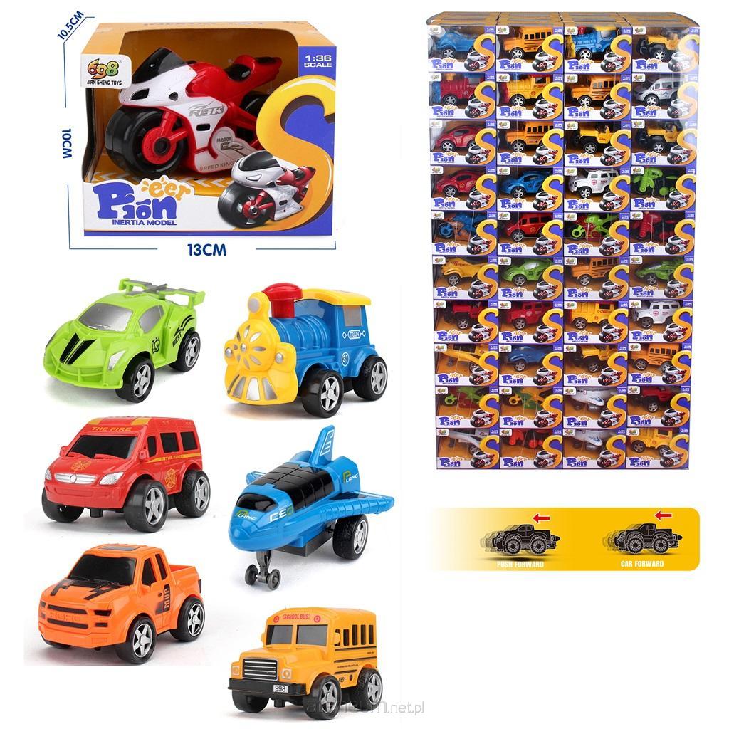 Kolorowe plastikowe pojazdy; samochody, lokomotywy, samoloty, motocykle, autka...