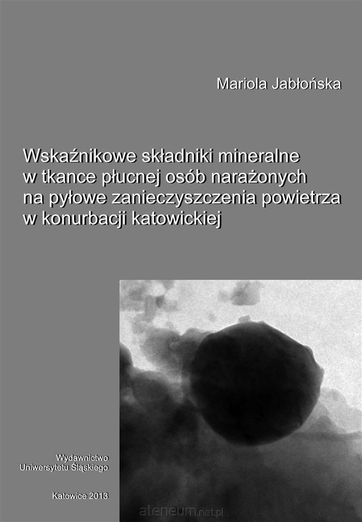 Niniejsza praca przedstawia pionierskie w literaturze polskiej wyniki badań składników mineralnych obecnych w tkance płucnej człowieka, głównie zaś w płucach osób narażonych na pyłowe zanieczyszczenia w konurbacji katowickiej. Analizy z użyciem mikroskopii elektronowej skaningowej (SEM) i transmisyjnej (TEM) uzupełniono rezultatami analiz chemicznych z zastosowaniem ICP, co pozwoliło na wyodrębnienie składników wskazujących na różne pochodzenie substancji mineralnej w płucach. Wyróżniono składniki tworzące się w tkance płucnej człowieka na skutek działania procesów fizjologicznych, które prowadzą do powstawania biomineralizacji. Opisano składniki, na podstawie których można wymienić źródła zanieczyszczeń pyłowych przedostających się do płuc. Opracowanie wskazuje na potrzebę prowadzenia badań, pozwalających na identyfikację minerałów tworzących się w organizmie człowieka, które pomogą zrozumieć wpływ czynników środowiskowych na zdrowie ludzi. Publikacja adresowana jest do osób zajmujących się wpływem zanieczyszczeń środowiskowych na zdrowie ludzi. Szczególnie kierowana jest do osób, które badają wpływ zanieczyszczeń powietrza na środowisko. Ma zachęcić do podejmowania ścisłej współpracy zespołów interdyscyplinarnych mineralogów, geochemików i lekarzy.