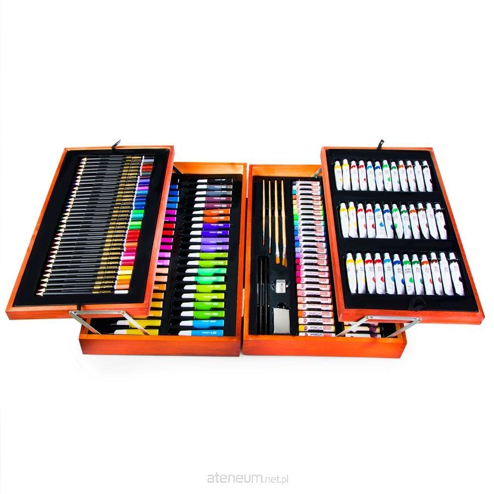 Zestaw artystyczny to praktyczne zestawienie elementów, które świetnie sprawdzą się przy każdym plastycznym wyzwaniu.Zestaw do malowania i kolorowania to praktyczne rozwiązanie dla wszystkich, którzy cenią sobie wygodę i kreatywne rozwiązania. Zestaw składa się z aż 174 elementy, a w jego skład wchodzi 36 farbek akrylowych, 36 kredek, 54 świecówki, 42 flamastry, 4 pędzelki, 2 ołówki, gumka, temperówka. Wysokiej jakości produkty to doskonały początek artystycznej przygody.Zestaw artystyczny sprawdzi się także dla tych, którzy stawili już pierwsze kroki w świecie sztuki.Całość została umieszczona w eleganckiej i praktycznej walizce, ułatwiającej przenoszenie i dodatkowo podbijającej walory estetyczne całego zestawu. Zestaw do malowania i rysowania to nie tylko obowiązkowy element wyposażenia każdego ucznia czy miłośnika kreatywnych zadań, ale także doskonały pomysł na prezent.