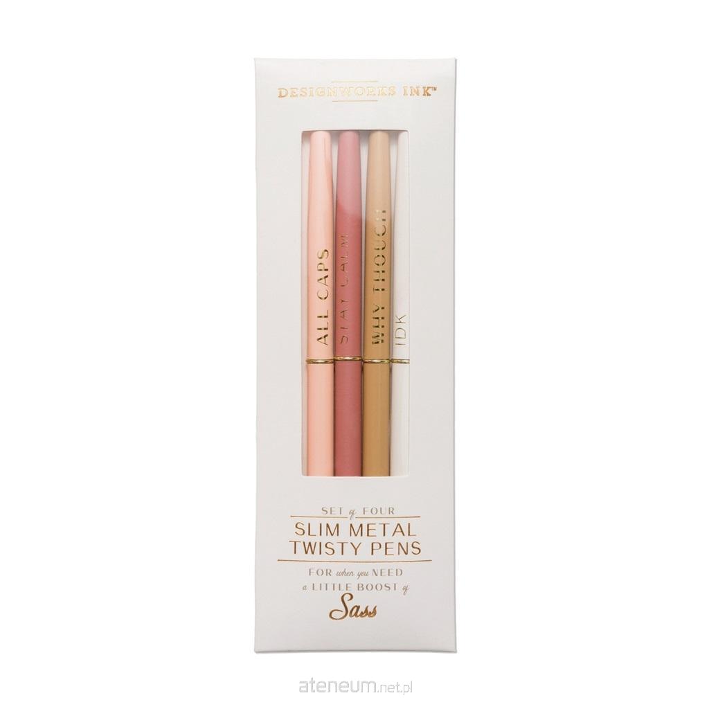 Zestaw 4 długopisów Cream marki DESIGNWORK INK zachwycają nowoczesnym, filigranowym designem. Dzięki smukłemu kształtowi modele doskonale leżą w dłoni. Wysokiej jakości wkłady wystarczają na długo i zapewniają wyjątkową przyjemność pisania.