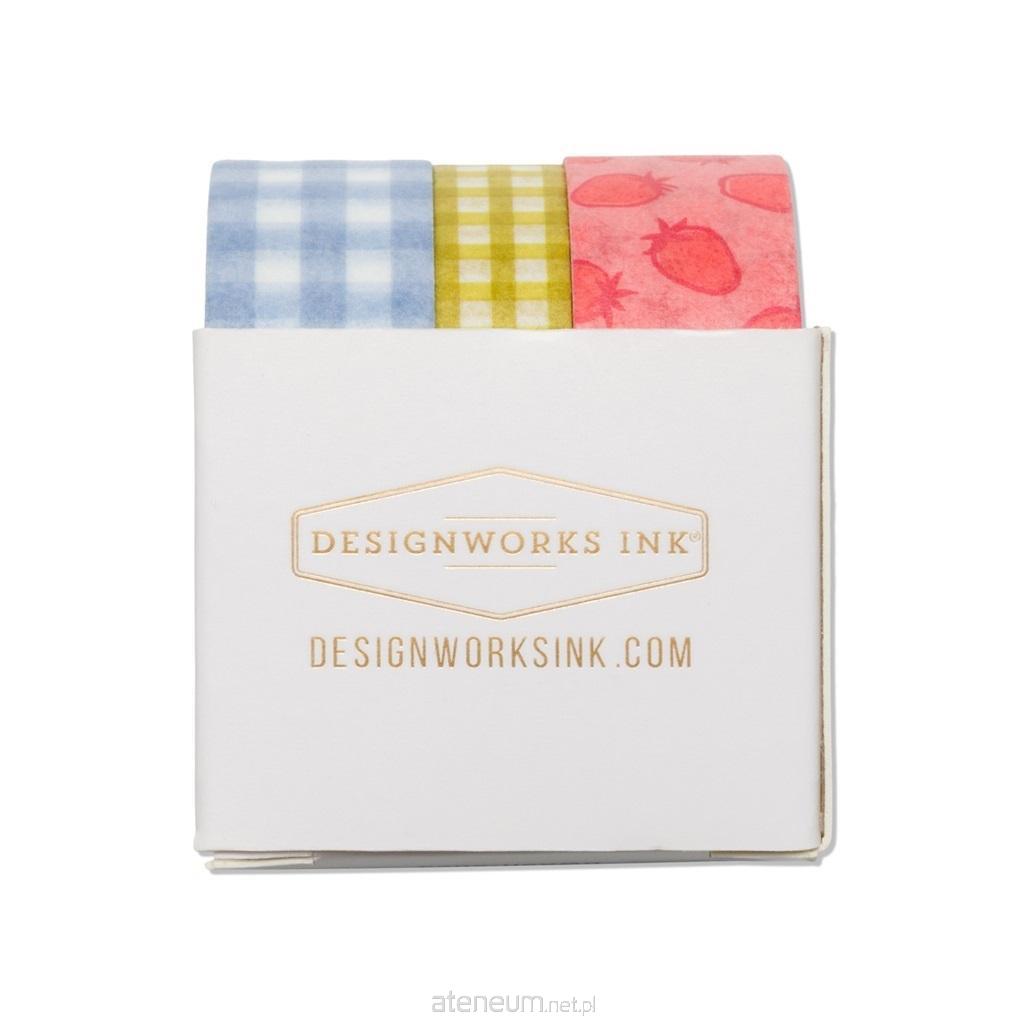 Ten zestaw 3 taśm zawiera rolkę w niebieską kratkę, żółtą kratkę i nadruk truskawek.