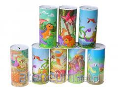 Skarbonka duża metalow, dinozaury 22x10cm MIX