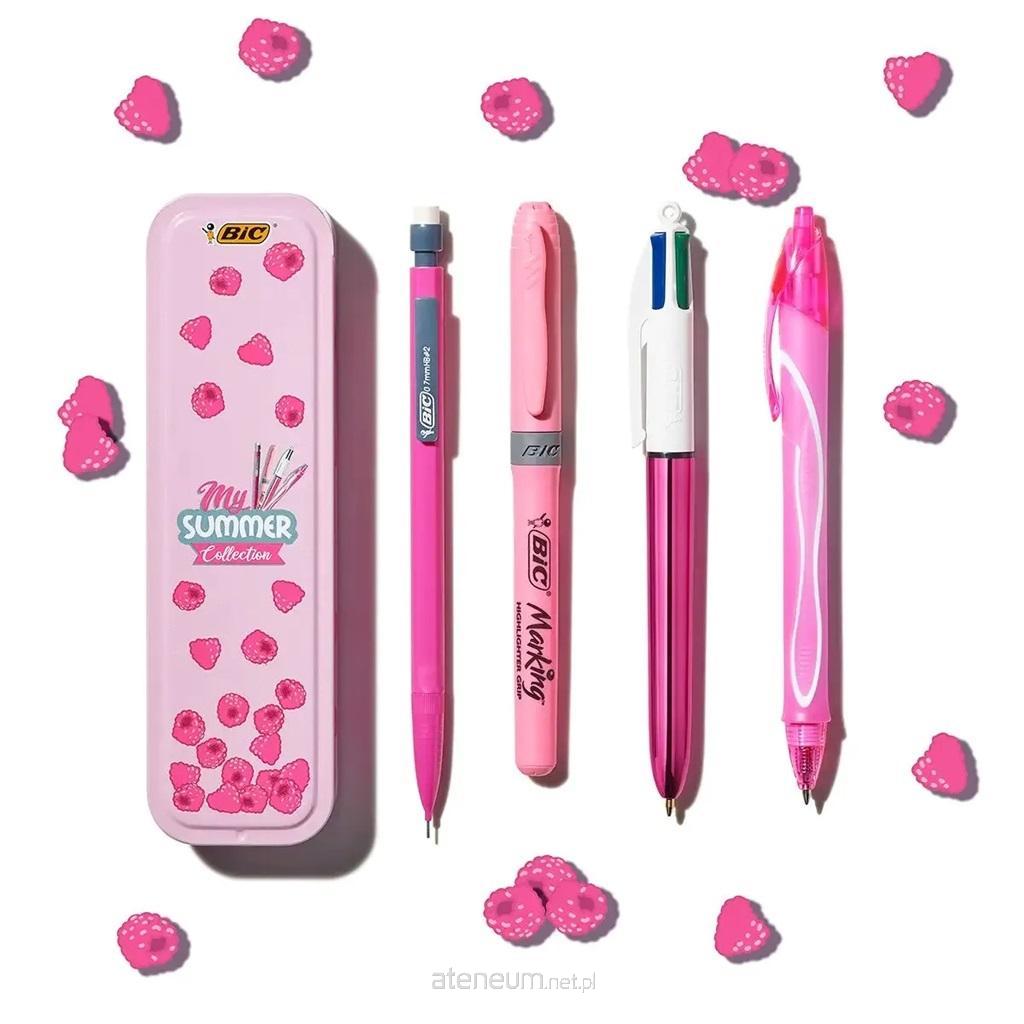 Zestaw różowy w metalowym pudełku 4 elementy.