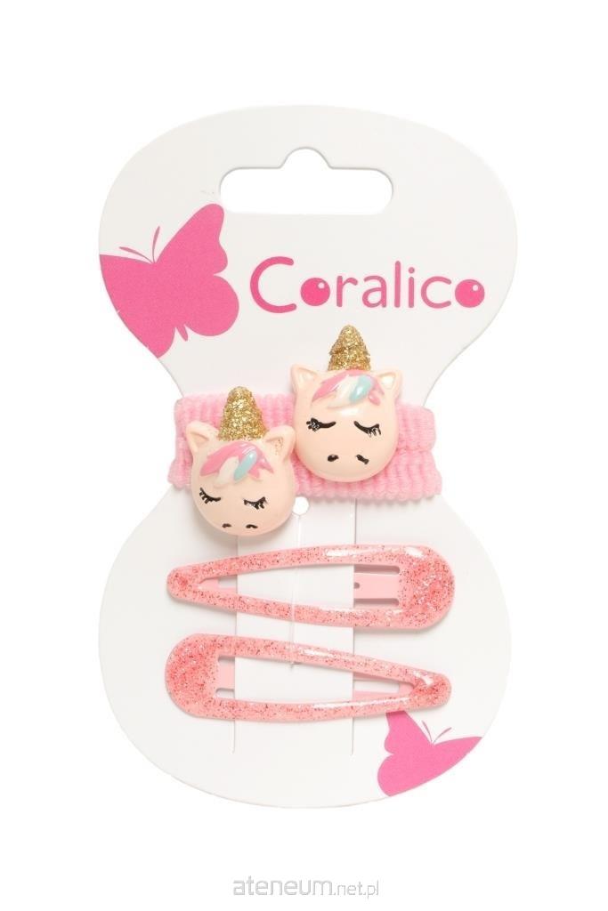 Zestaw frotek z motywem konika w kolorze różowym i powlekane spinki.