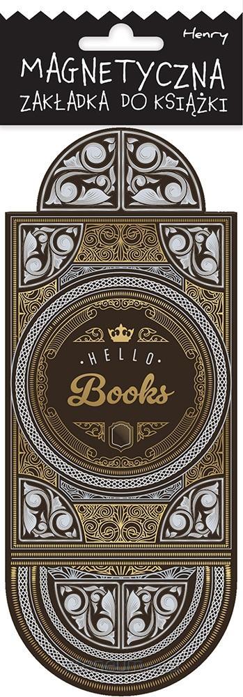 Uniwersalna magnetyczna zakładka do książki, zapakowana w woreczek foliowy z euro zawieszką. Ozdobiona złoceniami.