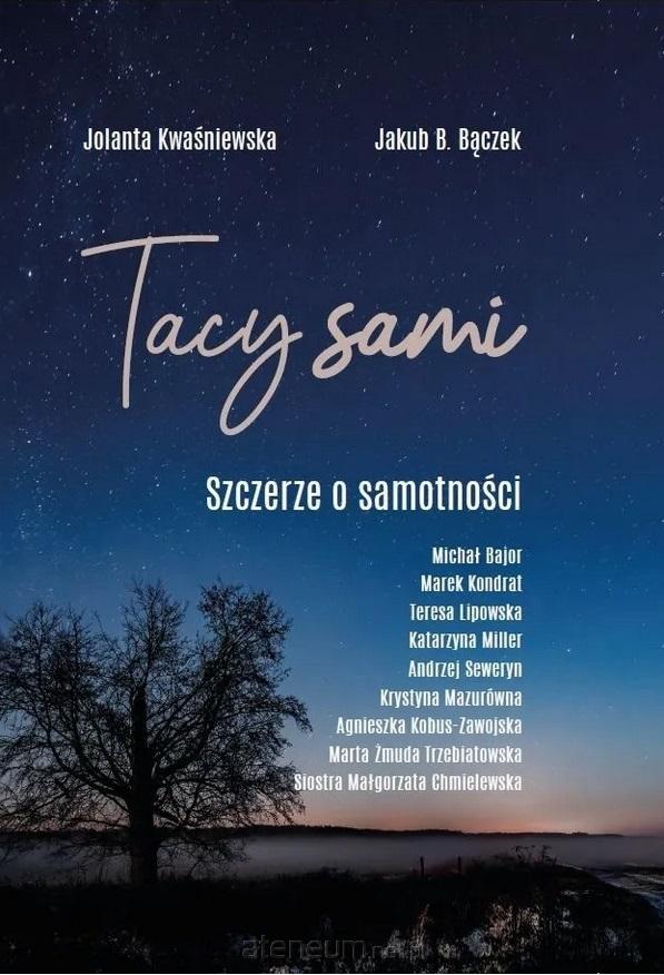 Jeżeli doświadczyłeś lub doświadczasz problemu, jakim jest samotność, wiedz, że nie jesteś...sam! Jest to zjawisko globalne, z którym mierzy się coraz więcej kobiet i mężczyzn na całym świecie. Jeżeli chcesz dowiedzieć się, co sądzą na ten temat osoby znane Ci ze świata kultury czy sztuki, koniecznie sięgnij po książkę autorstwa Jolanty Kwaśniewskiej i Jakuba B. Bączka "Tacy sami. Szczerze o samotności".