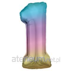 Balon foliowy cyfra 1 tęczowa pastel 38x86cm