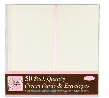 Zestaw 50 kremowych, podłużnych baz kartek oraz 50 kremowych, podłużnych kopert.