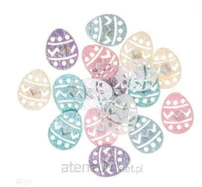 Opalizujące, ażurowe naklejki z filcu z motywem pisanek. Idealnie nadają się do ozdabiania wielkanocnych projektów typu scrapbooking (albumy, pudełka, pakowane prezentów), home decor; do aranżacji świątecznych stołów, stroików oraz wielu innych.