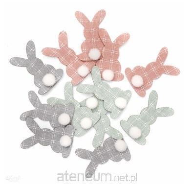 Naklejki z materiału w kształcie króliczkówz puszystymi ogonkami w 3 pastelowych kolorach z deseniem w kratkę.