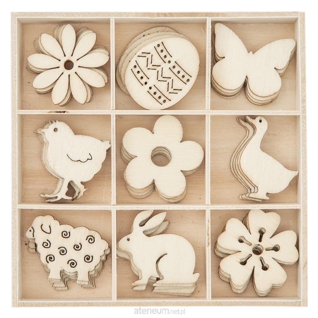 Wyjątkowe kształty z drewna, "sielska wielkanoc", to doskonałe elementy do wielkanocnych projektów rękodzielniczych. W drewnianym opakowaniu znajduje się aż 45 chipboardów w dziewięciu uroczych wzorach: kwiatków (3 wzory), motylków, owieczek, królików, kurczaczków, gąsek oraz pisanek. Część kształtów (np. motylki i kwiatki) jest na tyle uniwersalna, że można używać ich z powodzeniem do projektów całorocznych