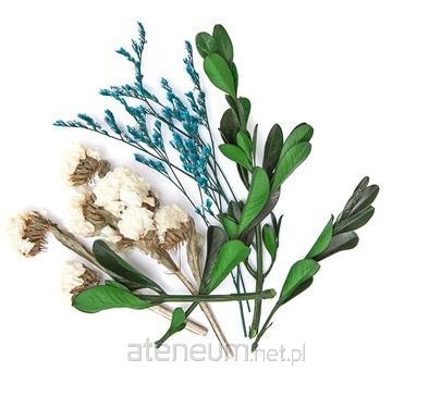 W zestawie znajdziesz elementy takich roślin, jak: limonium czy bukszpan.