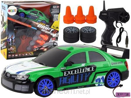 Autko Sportowe Zdalnie Sterowane R/C 1:24 Zielone Wymienne Koła Prezentujemy dynamiczny samochód zdalnie sterowany w fascynującej skali 1:24, dostarczając niezapomnianych chwil rozrywki i adrenaliny dla miłośników zdalnego sterowania. Zielony samochód to nie tylko elegancki wybór kolorystyczny, ale również połączenie stylowego designu z imponującą wydajnością. W zestawie znajdziesz 6 pomarańczowych pachołków, które pozwalają na dostosowanie trasy do własnych preferencji oraz dwa komplety kół - jedne z bieżnikiem dla pełnej stabilności, a drugie gładkie, idealne do efektownego driftu. Zdalne sterowanie o częstotliwości 2.4 GHz zapewnia pełną kontrolę nad ruchem samochodu, umożliwiając nie tylko jazdę do przodu i do tyłu, ale także dynamiczne skręty na boki. Samochód osiąga prędkość ponad 15 km/h, co sprawia, że zapewnia dynamiczne i ekscytujące doznania podczas jazdy. To nie tylko zabawka - to prawdziwe doświadczenie dla młodych pasjonatów motoryzacji i zdalnego sterowania. Idealny jako prezent, który łączy w sobie edukację, zabawę i rozwijanie zdolności motorycznych. Nasz zdalnie sterowany samochód, z pewnością przyniesie mnóstwo frajdy i niezapomnianych przygód dla wszystkich fanów motoryzacji! Odkryj moc zdalnego sterowania i ciesz się ekscytującymi manewrami na własnym torze przeszkód! Samochód jest zasilany na akumulator 3.7V który jest częścią zestawu. Pilot jest zasilany na baterie 2x 1.5V AA, które nie są częścią zestawu. Wymiary autka: 18cm x 8,5cm x 6cm Wymiary opakowania: 24cm x 24cm x 10,5cm Posiada certyfikat CE, ponadto jest zgodny z normą EN71. Przeznaczony dla dzieci powyżej 6 roku życia.