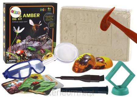 Zestaw Archeologiczny Wykopaliska Owady w Bursztynie Przedstawiamy Zestaw Archeologiczny Ze Skamielinami Owadów w Bursztynie. Ten edukacyjny zestaw to prawdziwe odkrywcze doświadczenie dla każdego dziecka, które pasjonuje się skamielinami, tajemniczymi znaleziskami i marzy o karierze archeologa. Głównym elementem zestawu jest gipsowy odlew z zatopionymi w nim autentycznymi bursztynami, w których można odnaleźć zachowane owady. Zadaniem dziecka jest wydobycie bursztynów za pomocą dołączonego młoteczka i dłuta To nie tylko zabawa, ale również rozwijanie umiejętności koordynacji ruchowej i koncentracji. Do zestawu dołączona jest również lupa, dzięki której dziecko może przyjrzeć się jeszcze bliżej odkryciom. Wyposażenie w okulary ochronne pozwoli maluchowi poczuć się jak prawdziwy profesjonalny odkrywca, dbając o bezpieczeństwo podczas ekscytujących poszukiwań. Dodatkowo, w zestawie znajdziemy również karty opisujące każdy znaleziony owad. To idealne narzędzie, które rozwija zainteresowania dziecka, dostarczając fascynujących faktów i informacji na temat każdego odnalezionego okazu. Znalezione bursztyny mogą stać się wyjątkową kolekcją, którą dziecko z dumą zaprezentuje na stylowym stojaku lub umieści w ozdobnym woreczku. Dla tych, którzy marzą o karierze archeologa, ten zestaw stanowi niezapomniane wprowadzenie do fascynującego świata wykopalisk. Zestaw zawiera: -gipsowy odlew -młoteczek -dłuto -pędzelek -okulary ochronne -lupa -woreczek na skamieliny -stojak do prezentacji -6 kart z wizerunkami i opisami owadów w języku angielskim Wymiary opakowania: 22cm x 29,5cm x 5,5cm Posiada certyfikat CE, ponadto jest zgodny z normą EN71. Przeznaczony dla dzieci powyżej 6 roku życia.