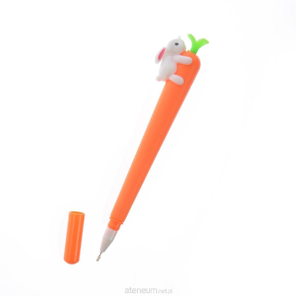 Długopis w kształcie marchewki z białym króliczkiem na szczycie. Wielkość produktu: 14,5 cm. Zabawny upominek wielkanocny, idealny dla każdego!