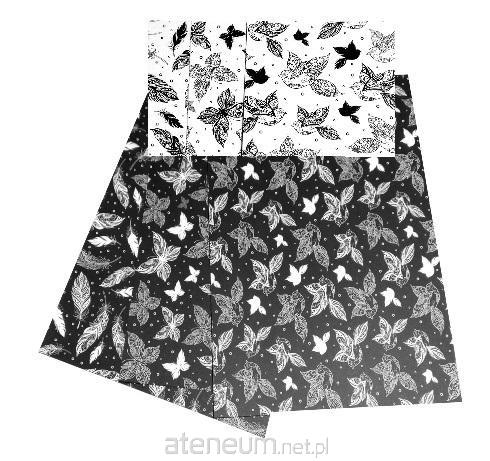 Zestaw 3 arkuszy kartonów motywowych w motywy piór, motyli oraz ptaków w kolorach czarno-białych. Spód kartonu ma nadruk będący negatywem wierzchniej strony. Gramatura 300