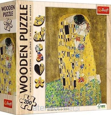 WOODEN PUZZLE 200 elementów przedstawiające znany na całym świecie obraz Pocałunek, Gustav Klimt.