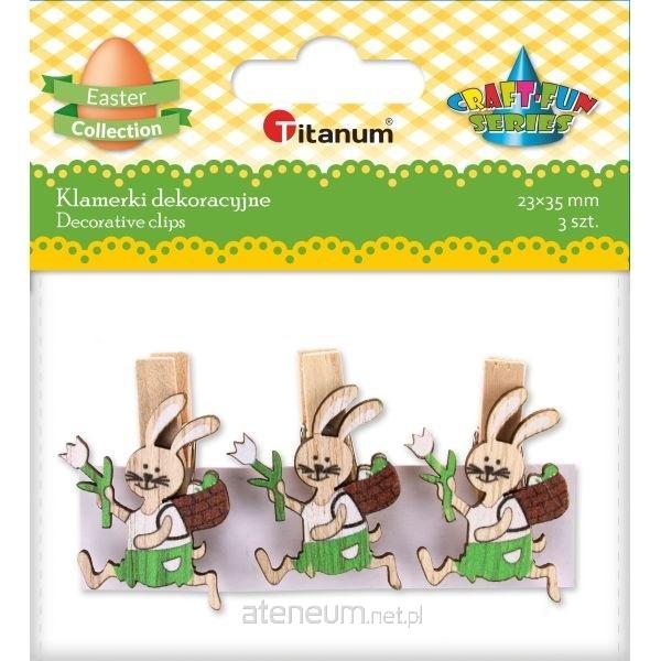 Klamerki drewniane z dekorem naturalne 7 x 35 mm królik z koszykiem pisanek i tulipanem 28 x 35 mm 3 szt.