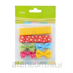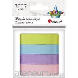 Wstążki satynowe 15 mm/2 m, 6 kolorów: żółty, jasnoniebieski, wrzosowy, jasnoróżówy.