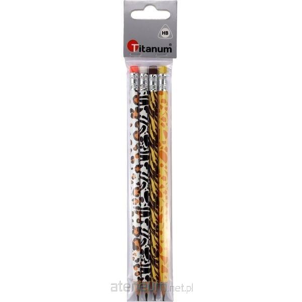 Ołówki trójkątne HB z gumką do wymazywania 4 szt. Wzory zwierzęce.