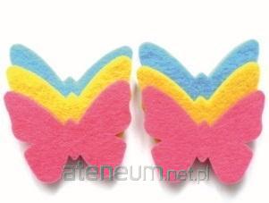 Opakowanie zawiera 6 motylków z filcu w kolorach: żółtym, niebieskim i różowym.