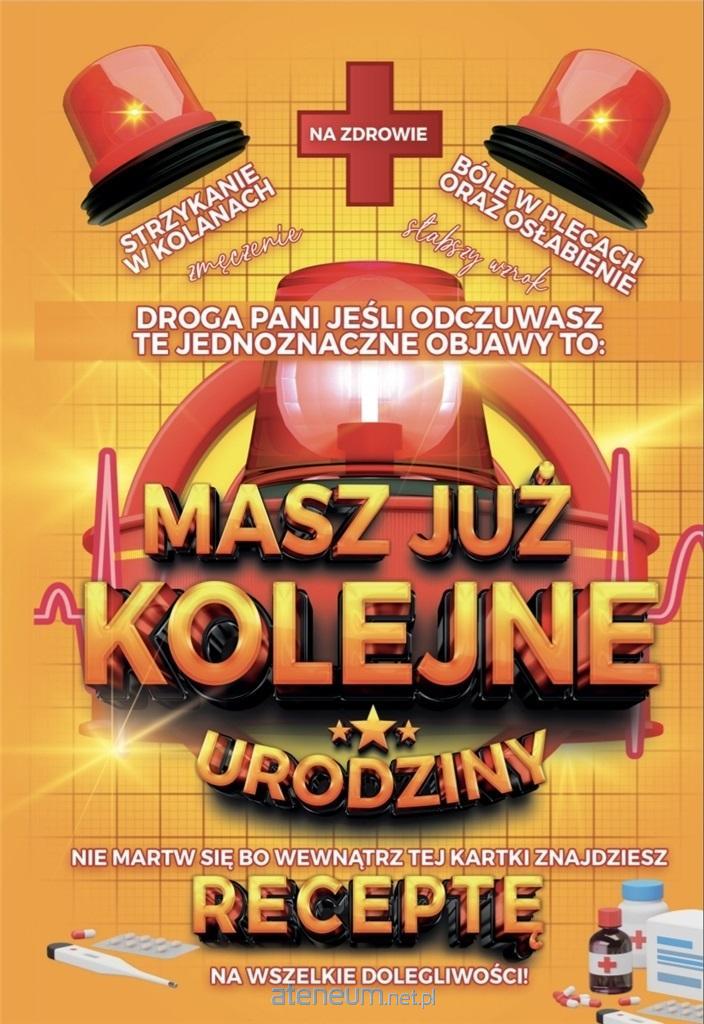 Karnet JCX z receptą to wyjątkowy pomysł na sprawienie obdarowanemu nim wesołej i niebanalnej niespodzianki. Wykonane z wysokiej jakości grubego papieru o gramaturze 350g i uszlachetnione dającym połysk lakierem UV. Wewnątrz karnetu znajduje się dedykowana recepta wzorowana na oryginalnym druku, którą wypełniają goście. Oryginalne i wesołe teksty zaskoczą każdego jubilata i z pewnością wywołają uśmiech na jego twarzy. Karnet może być idealnym dodatkiem do każdego prezentu. Karnet zawiera również humorystyczne życzenia.