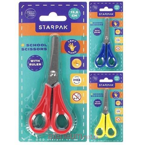 Zalety produktu: doskonałe ostrze z nierdzewnej stali najwyższej jakości, ergonomiczna, bardzo wygodna plastikowa rączka zapewnia precyzję i optymalizuje siłę używaną do cięcia, posiadają uniwersalny uchwyt odpowiedni dla osób leworęcznych, nożyczki z miarką STARPAK w kolorze niebieskim, czerwonym lub żółtym. Chętnie kupowane zarówno do biura, jak i domu. Zapoznaj się również z innymi produktami STARPAK dedykowanymi dla biura i domu! Zawartość opakowania: nożyczki leworęczne o długości 13 cm. Wykonane z metalu oraz plastiku. Wymiary/waga: wymiary produktu (dł. x wys. gł)[cm]: 6x13x1, wymiary opakowania (dł. x wys. x gł.)[cm]: 9x19x2, waga produktu [kg]: 0,04kg. Nie odpowiednie dla dzieci poniżej 3 lat. Nożyczki pakowane na blistrze z zawieszką.
