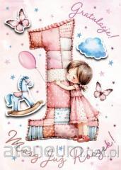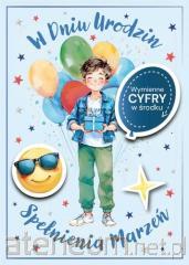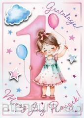 Karnet okolicznościowy z kopertą i życzeniami w środku.