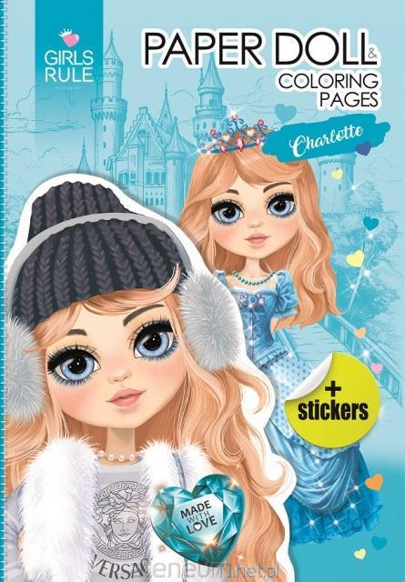 Papierowa lalka do zabawy - Charlotte. W środku znajdziesz wiele różnych strojów, w które możesz ją przebrać. Pokoloruj ją, a następnie wytnij z książeczki, potem ubierz - zaginając specjalnie zaznaczone krawędzie. Stroje mają wyraźne oznaczenia pokazujące, gdzie wyciąć, aby ubrania pasowały na lalkę. Wykorzystaj także naklejki, które znajdziesz w środku. Baw się opowiadając najróżniejsze historie. Możesz przebrać lalkę i zacząć zabawę od nowa.