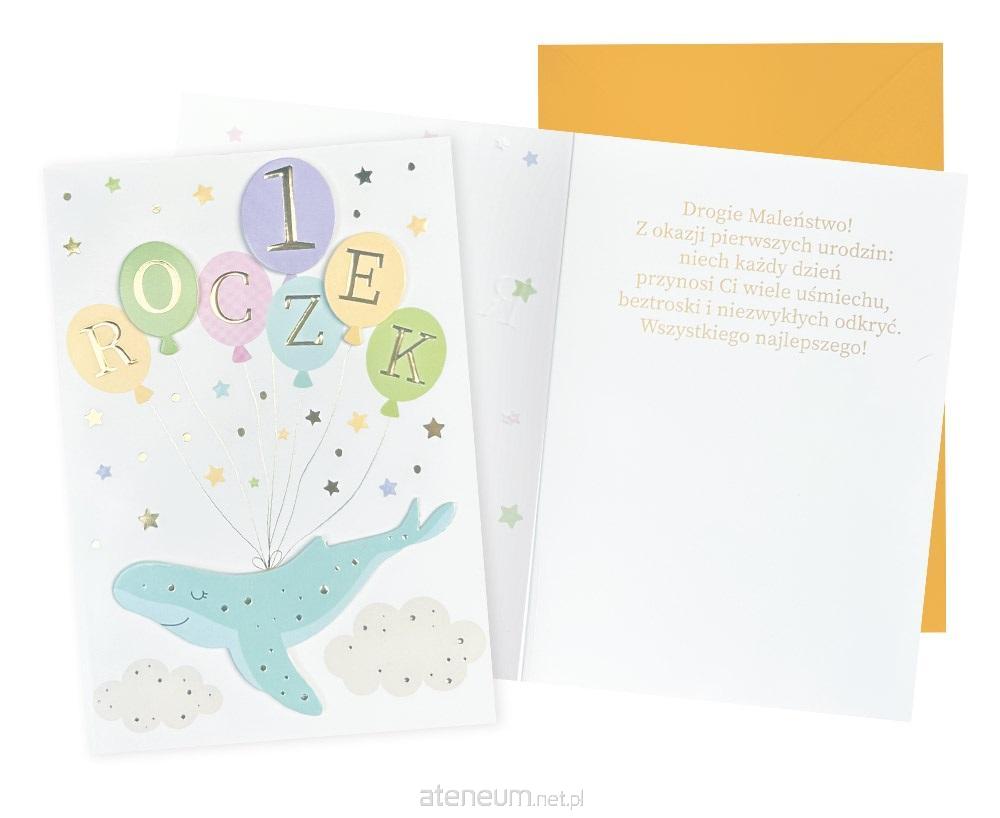 Kartka B6 z ozdobnej serii Dream Cards na 1 urodziny - nieduża, ale robi wrażenie dzięki atrakcyjnej kolorystyce i ciekawym zdobieniom.
