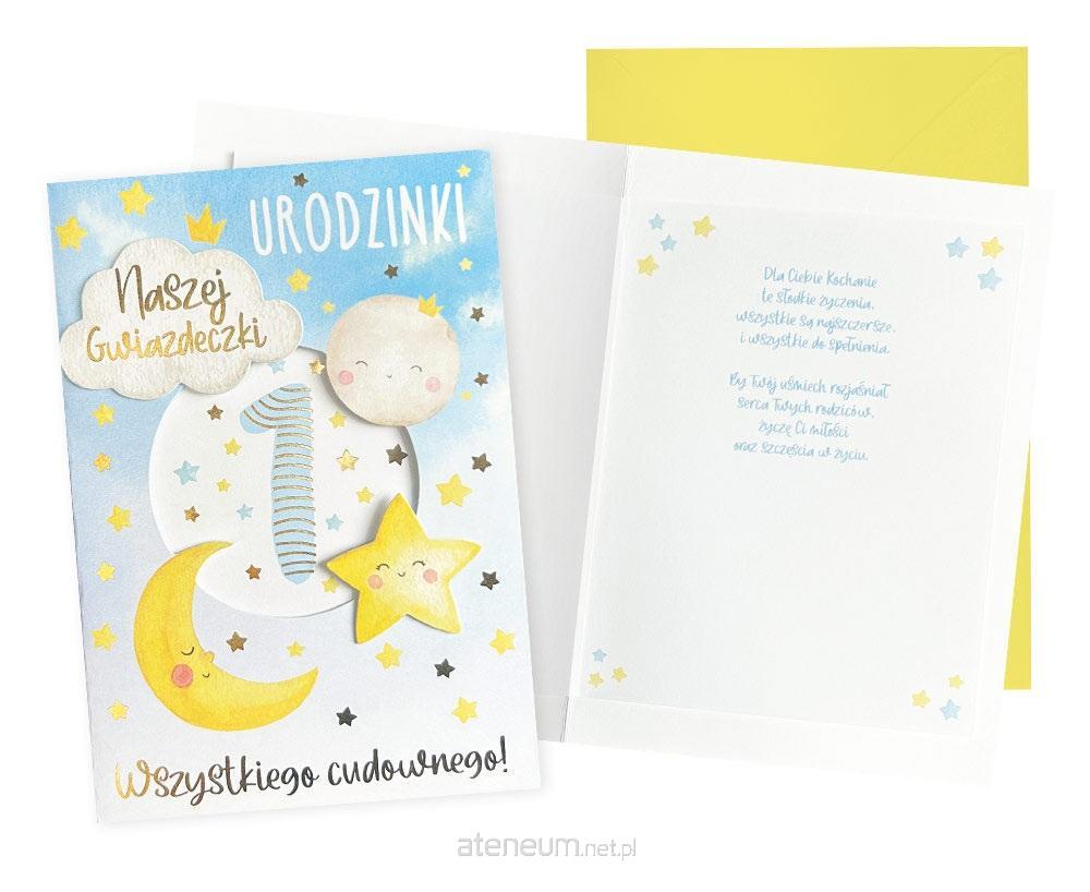 Kartka B6 z ozdobnej serii Dream Cards na 1 urodziny - nieduża, ale robi wrażenie dzięki atrakcyjnej kolorystyce i ciekawym zdobieniom.