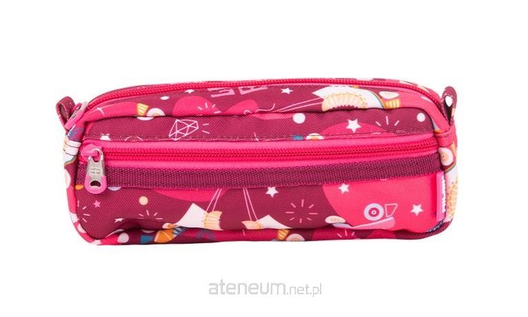 Piórnik prostokątny z 2 komorami zapinanymi na suwak z kolekcji ROLLER. Różowy z nadrukiem inspirowanym wrotkami retro. Z małą kieszenią na przodzie i dużą komorą główną. Skład: Materiał zewnętrzny i wewnętrzny 100% poliester. Rozmiar: 21 x 8,5 x 6,1 cm.