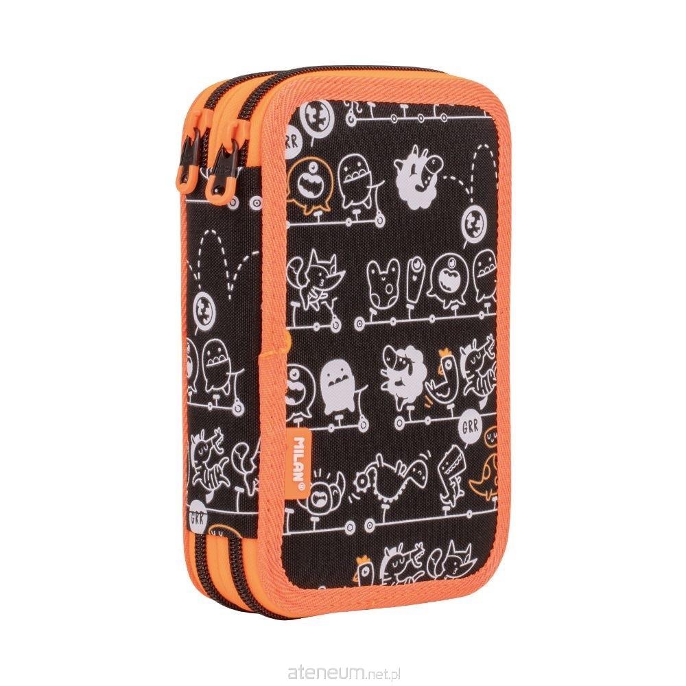 Piórnik 2 - poziomowy z wyposażeniem z kolekcji TANDEM, który pozwala utrzymać przybory szkolne zawsze w porządku i łatwo dostępne. Białe i fluo pomarańczowe nadruki na czarnym materiale przedstawiają różnorodne postacie przemierzące noc w tandemie. Dinozaury, krokodyle i kosmici, a także zabawne tosty, jajka i rogaliki. Wszystkie ze sobą współpracują i pędzą w tym samym kierunku. Wyposażenie: 12 kredek trójkątnych, 18 flamastrów ze stożkową końcówką, długopis P1 Look niebieski, ołówek sześciokątny HB, linijka trójkątna 15 cm, temperówka kwadratowa AFILA, 2 gumki (4024 i niebieska 7024B). Przy produkcji piórników użyto najlepszych materiałów, bardzo wytrzymałych suwaków oraz wzmocnionych nici. Niepowtarzalne wzornictwo. W piórnikach znajdziesz m. in.: kredki MILAN przy produkcji których użyto drewna pochodzącego wyłącznie z plantacji, gwarantujących nieużywanie drewna z lasów deszczowych. Rysik kredki na całej długości jest przyklejony do drewna co zapobiega jego łamaniu. Dzięki trójkątnej budowie kredka jest ergonomiczna i wygodnie trzyma się dziecku. Flamastry MILAN posiadają wytrzymałą i elastyczną stożkową końcówką, która nie wpada do środka nawet przy silnym nacisku. Po chwilowym odkształceniu końcówka zawsze wraca do pierwotnego kształtu. Tusz na bazie wody. Flamastry nie zawierają ftalanów, metali ciężkich i innych. Temperówkę z bezpiecznym przykręconym ostrzem dzięki czemu ostrze nie oddzieli się od obudowy temperówki. Gumkę z naturalnym kauczukiem. Skład Materiał zewnętrzny i wewnętrzny 100% poliester. Wymiary: 19,5 x 13 x 5 cm.