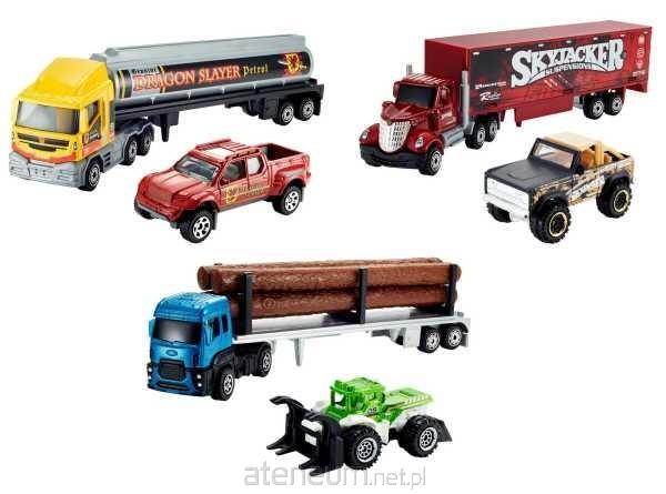 Każdy z tych zestawów Matchbox zawiera pojazd transportowy o długości 17,5 cm z odczepianą kabiną oraz samochodzik, które napędzają wyobraźnię realistycznym wyglądem.