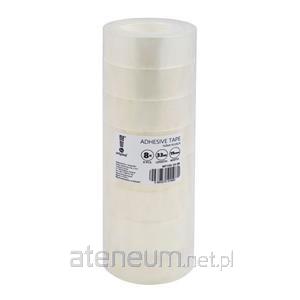 Taśma klejąca BOPP MemoBe. Szerokość 19 mm i długość 33 m. Bazowana na dobrej jakości kleju akrylowym. Grubość całkowita taśmy wraz z klejem to 35 mic. Rolki taśmy zgrzewane w słupku folią po 8 sztuk.