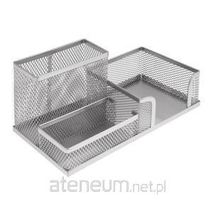 Przybornik wielofunkcyjny MemoBe. Wykonany z metalowej siateczki. Z eleganckimi wykończeniami. Trzy przegródki różnego zastosowania: na karteczki, na przybory piśmienne oraz drobne akcesoria biurowe. Produkt dostępny w kolorach: czarny i srebrny.