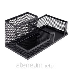 Przybornik wielofunkcyjny MemoBe. Wykonany z metalowej siateczki. Z eleganckimi wykończeniami. Trzy przegródki różnego zastosowania: na karteczki, na przybory piśmienne oraz drobne akcesoria biurowe. Produkt dostępny w kolorach: czarny i srebrny.