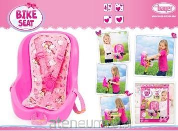 W tym nowoczesnym foteliku rowerowym, mozna wygodnie pomiescic lalke do wielkosci 46 cm. Modny design siedzenia i uroczy motyw tapicerki, nadaje jej szczególnie wyjatkowy wyglad. Z pomoca regulowanego Pasa bezpieczenstwa twoja ulubiona lalka jest zabezpieczona przed wypadnieciem. Fotelik rowerowy mozna zabezpieczyc z przodu lub do bagaznika za pomoca pasów. Measurements (cm): 23,5 x 16 x 24