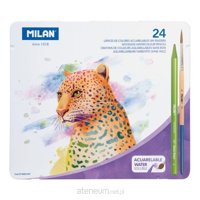 Kredki akwarelowe bezdrzewne TODOCOLOR. Wykonane w całości z kolorowego grafitu 100% rozpuszczalnego w wodzie. Idealne do sztuk pięknych, akwareli. Pigment jest pobierany bezpośrednio z kredki końcówką pędzla. Grafit jest zwilżany, a następnie można nim rysować i/lub malować. Bardzo dobrze się rozcierają. Umożliwiają miękkie rysowanie. Wiórki powstałe podczas temperowania mogą być użyte do cieniowania poprzez ich rozcieranie palcem lub wiszerem. Kredki można ostrzyć w zwykłych temperówkach. Zestaw zawiera 24 kolory oraz pędzel serii 103 nr 6 zrobiony w 70% z włosia koziego i 30% włosia syntetycznego idealny do technik wodnych. Wszystko zapakowane w metalowe pudełko. Idealne na prezent dla miłośników rysowania. Rozmiar opakowania: 21 x 18,5 x 1,5 cm.
