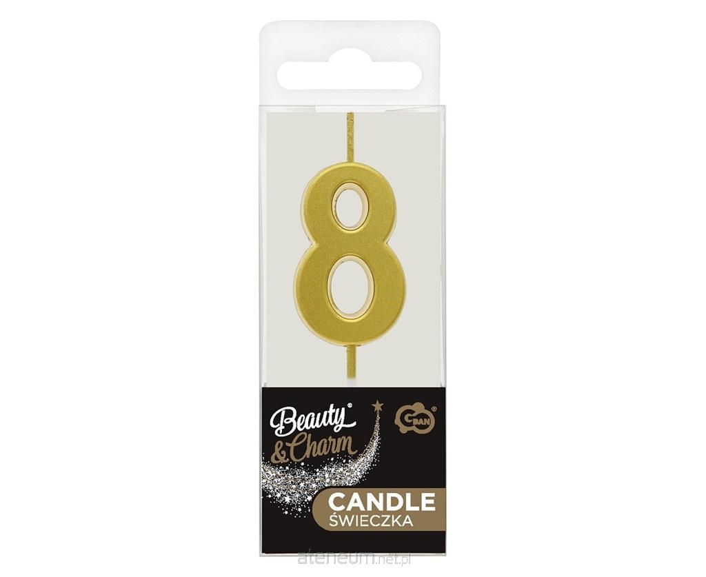 Świeczka cyferka 6 Beauty&Charm metalik złota 8cm
